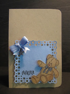 I spend a lot of time decorating feminine cards, trying to place flowers and lace here and there, before I'm able to make up my mind... I ended up with some flowers at the bottom left corner, a butterfly sticker, a chipboard with sentiment and lace. Oh, and lots of liquid pearls to make the swirls!