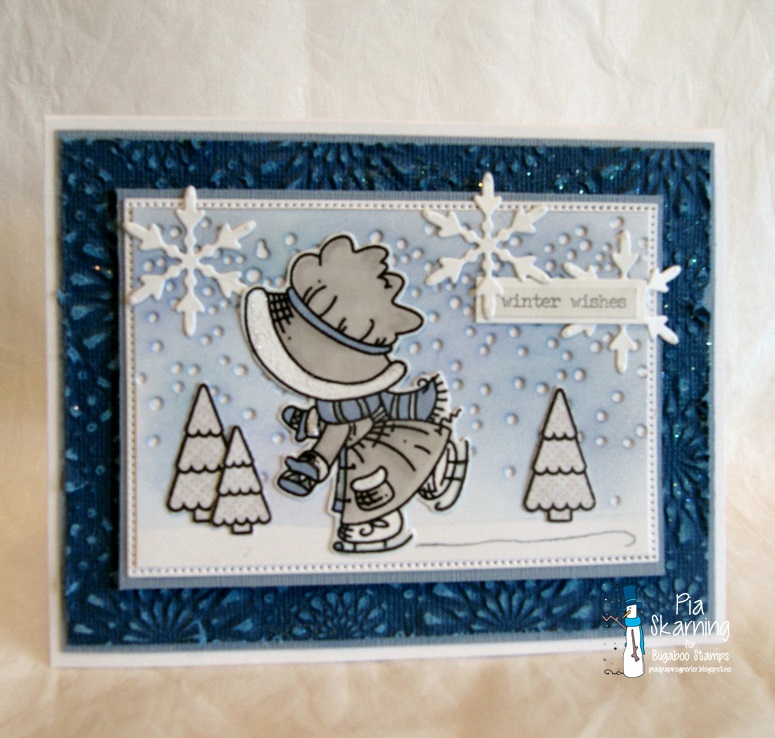So very sweet Pia..love the embossed background and the falling snow, goreous card.
