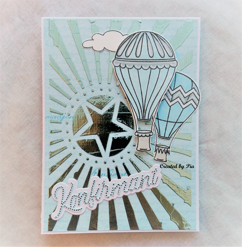 I'm in no rush for a wedding card, but I have none in my stash, so at some point it will come in handy. I I heat embossed the sentiment and the mandala (stamp from Papirdersign) with white. The background was made with a pink DOx and gold paint. I die cut a frame, found a piece of lace and flowers from my stash.